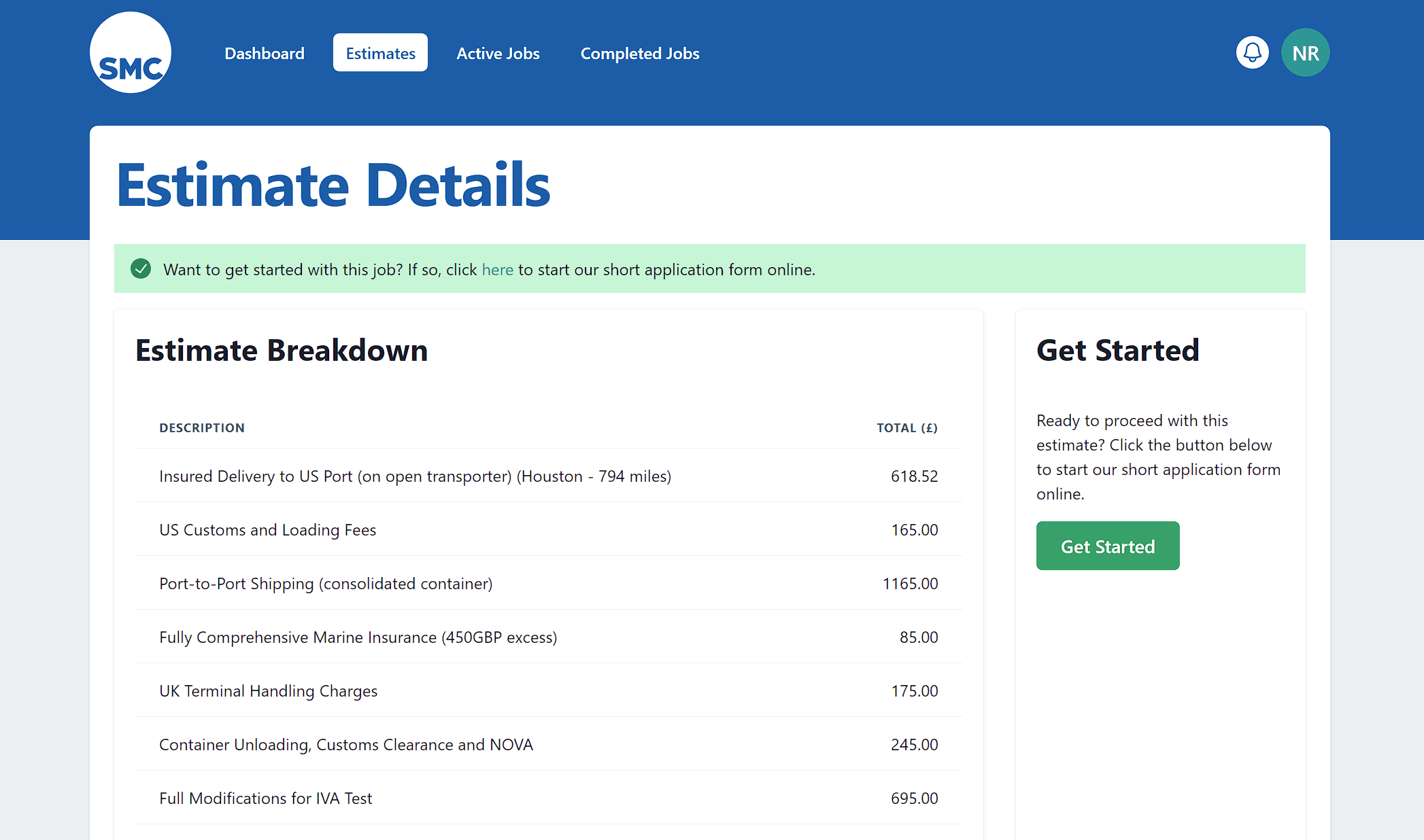 Everything you need to manage your car shipping quotes, testing, registration, customs clearance, UK transport and more.